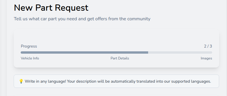 Create your next part request and write the description in your language. hank takes care of the rest.