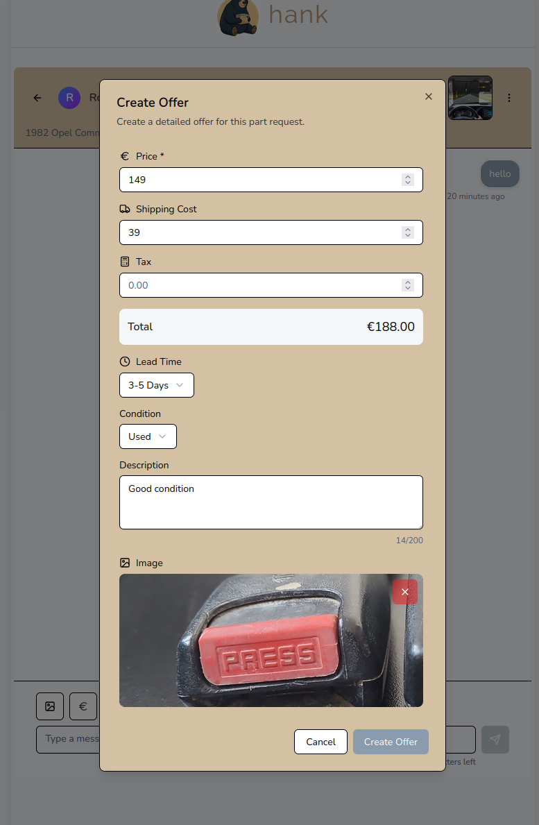 Stop browsing endless catalogs. hank is a reverse marketplace where you post what you need and sellers come to you with offers. Learn how to make your first part request in minutes.